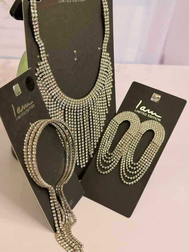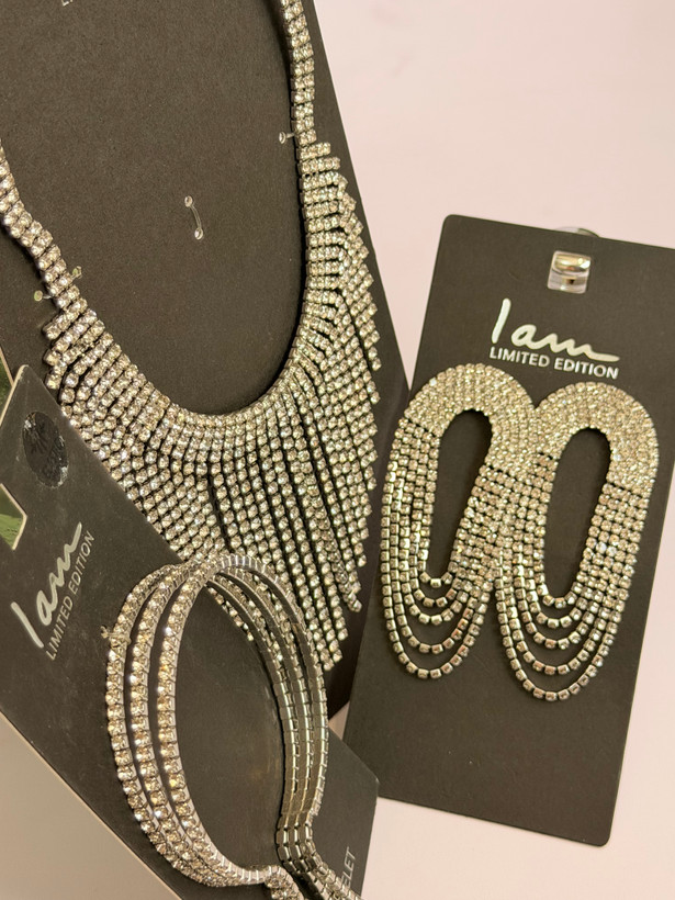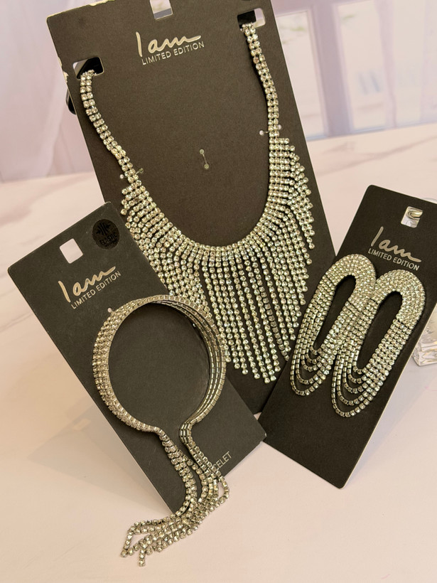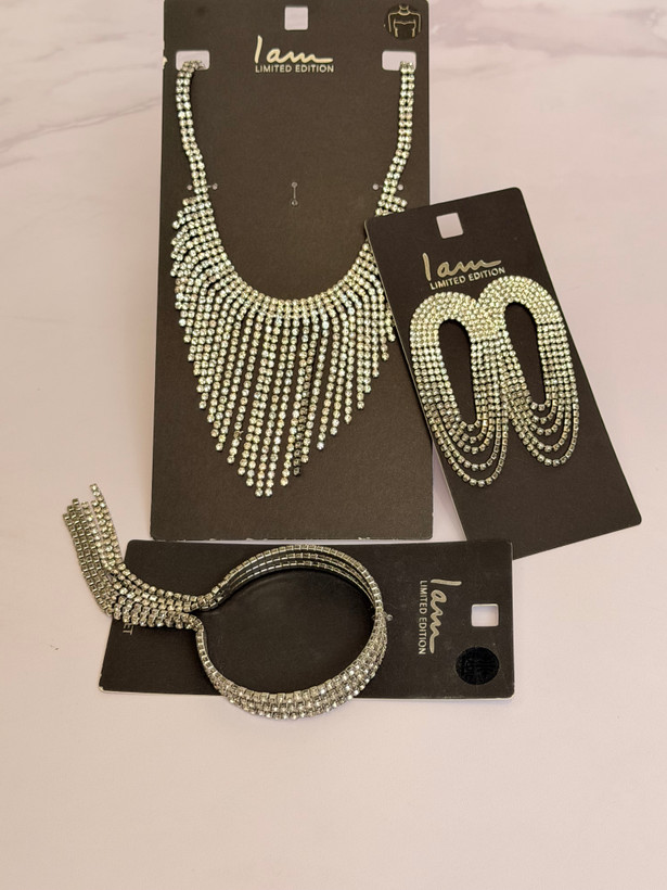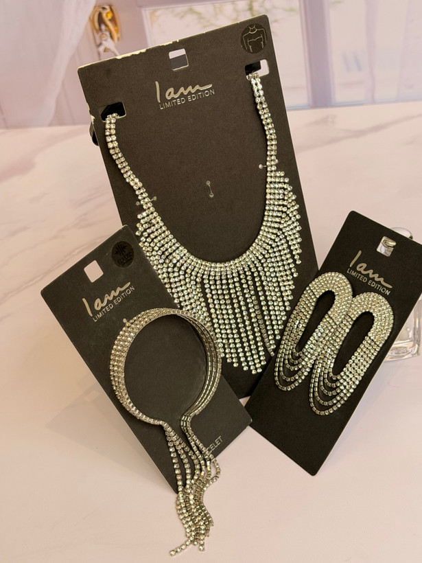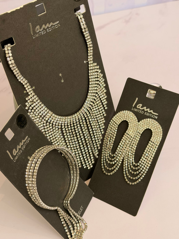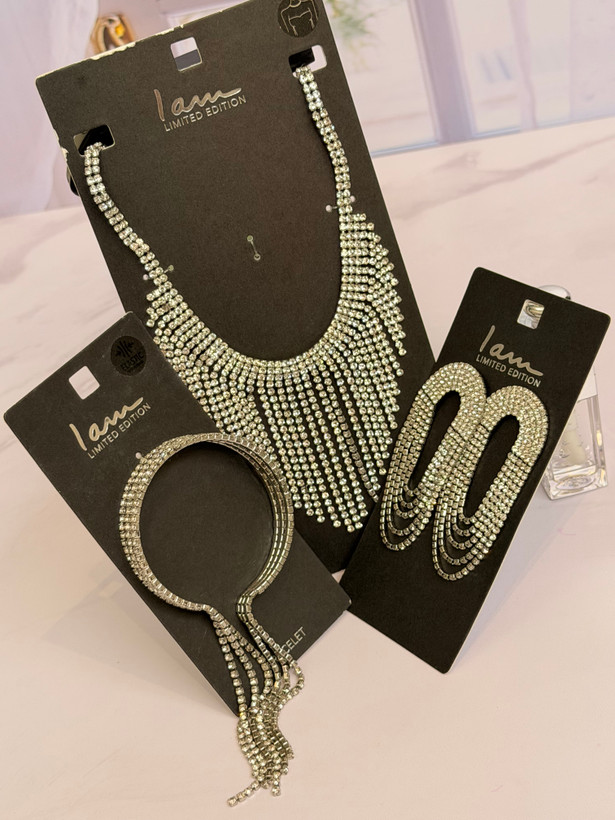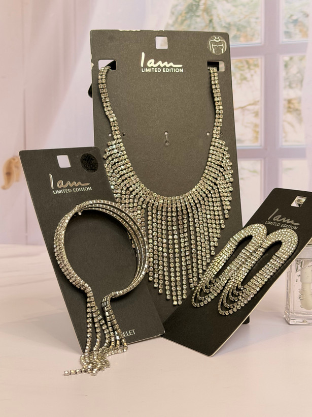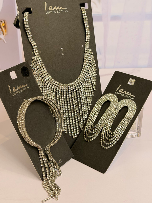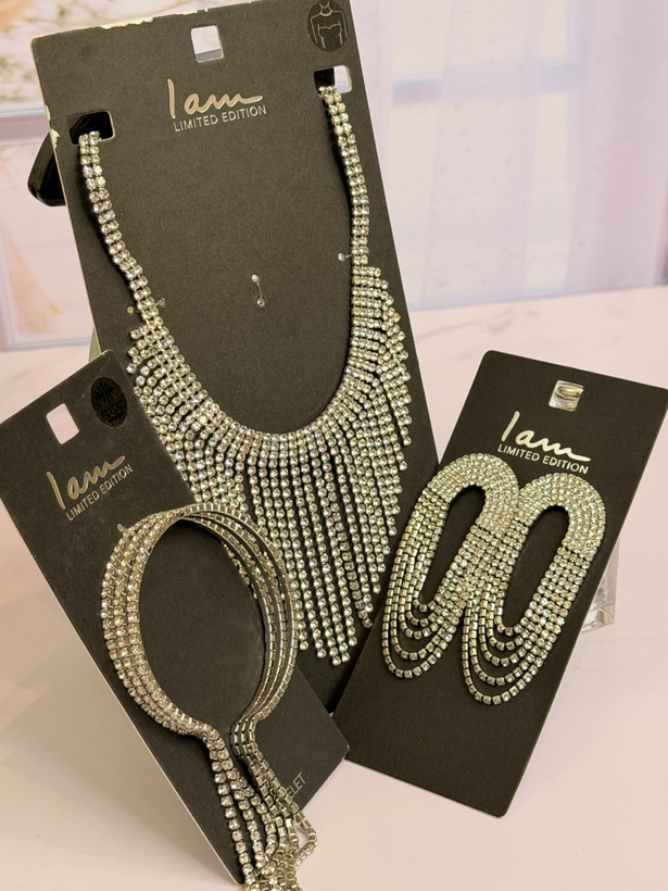 نیمست دخترانه تمام نگین | ست کامل گردنبند دستبند گوشواره درخشان و مجلسی مناسب هدیه