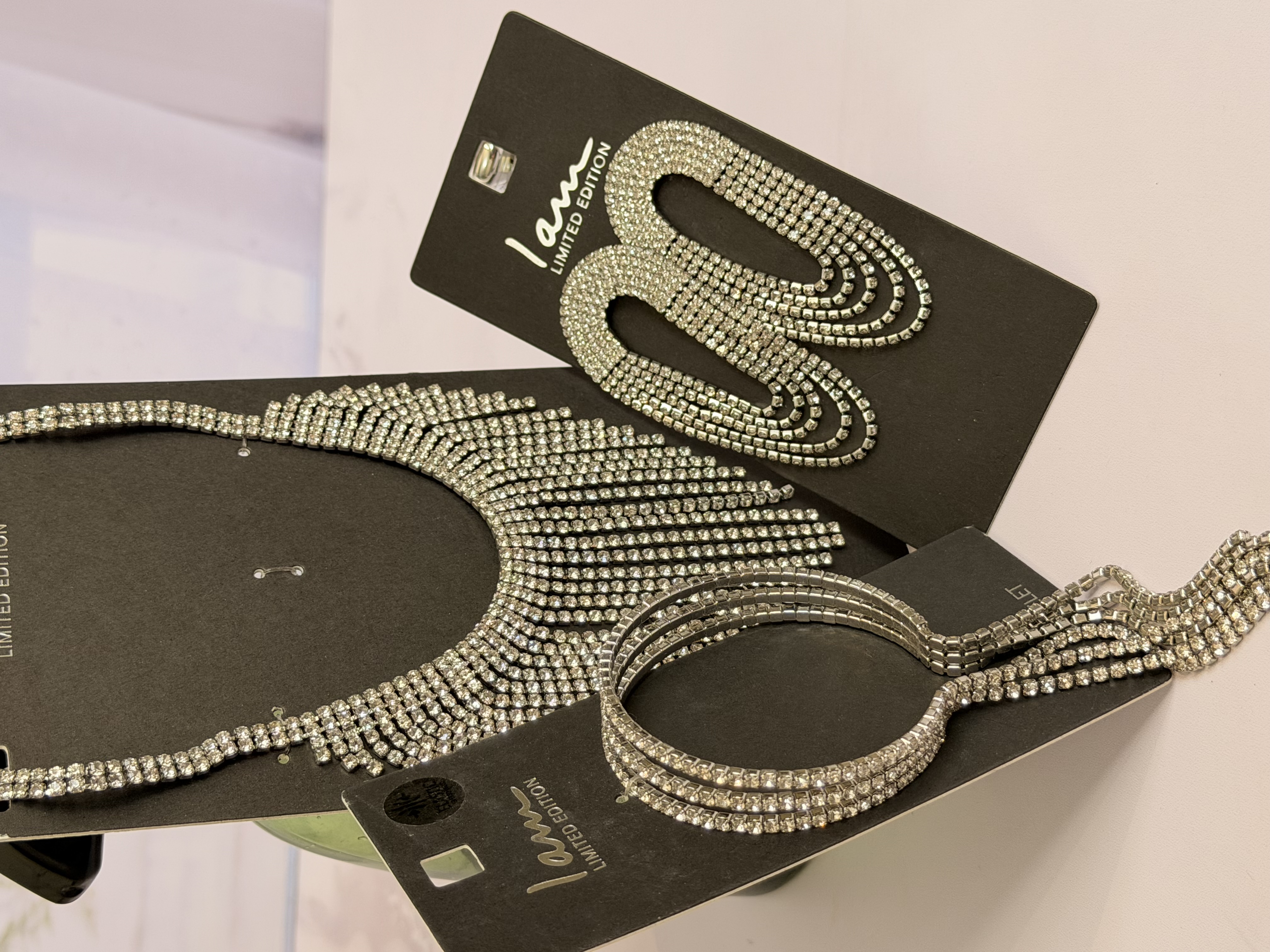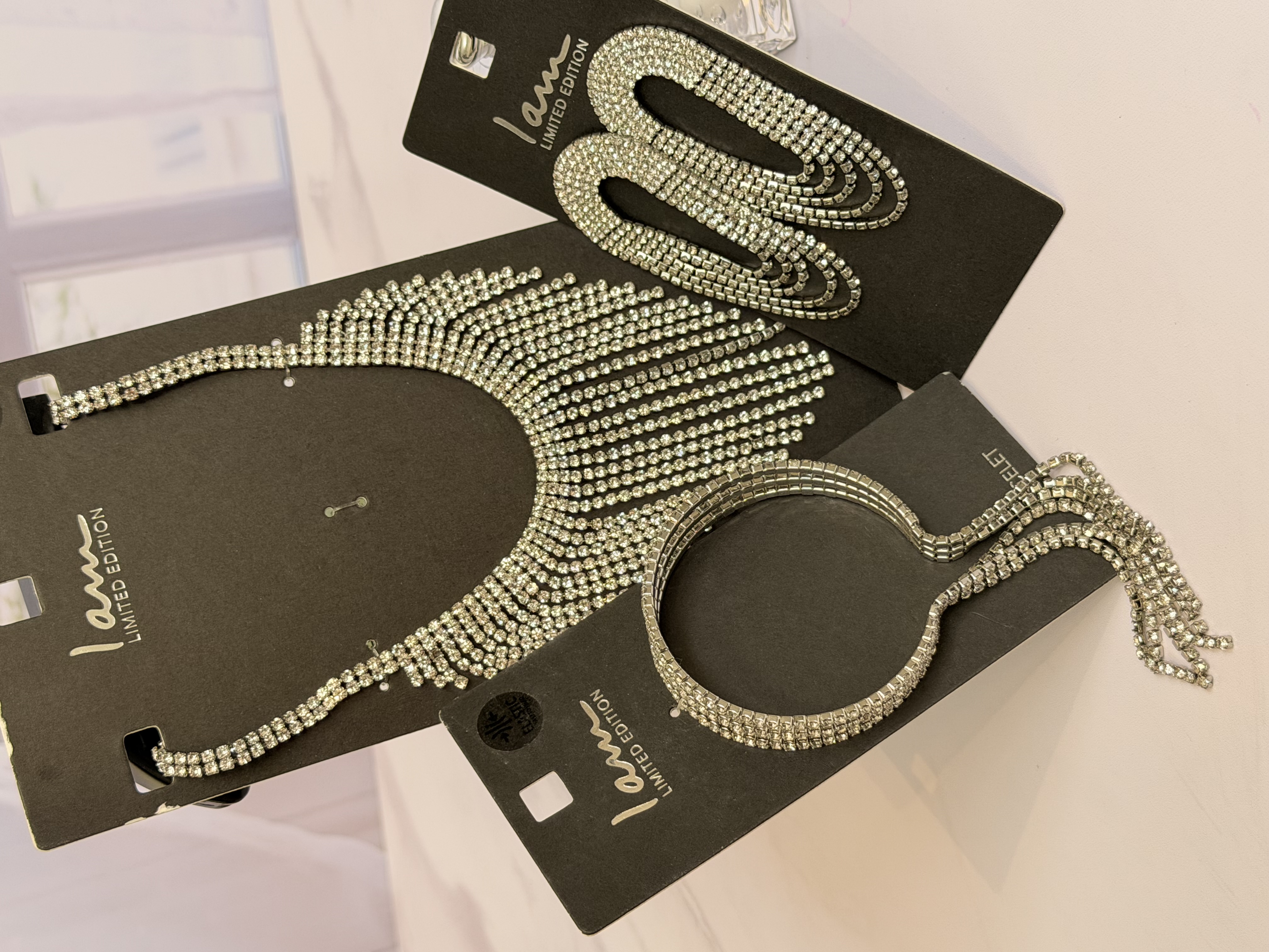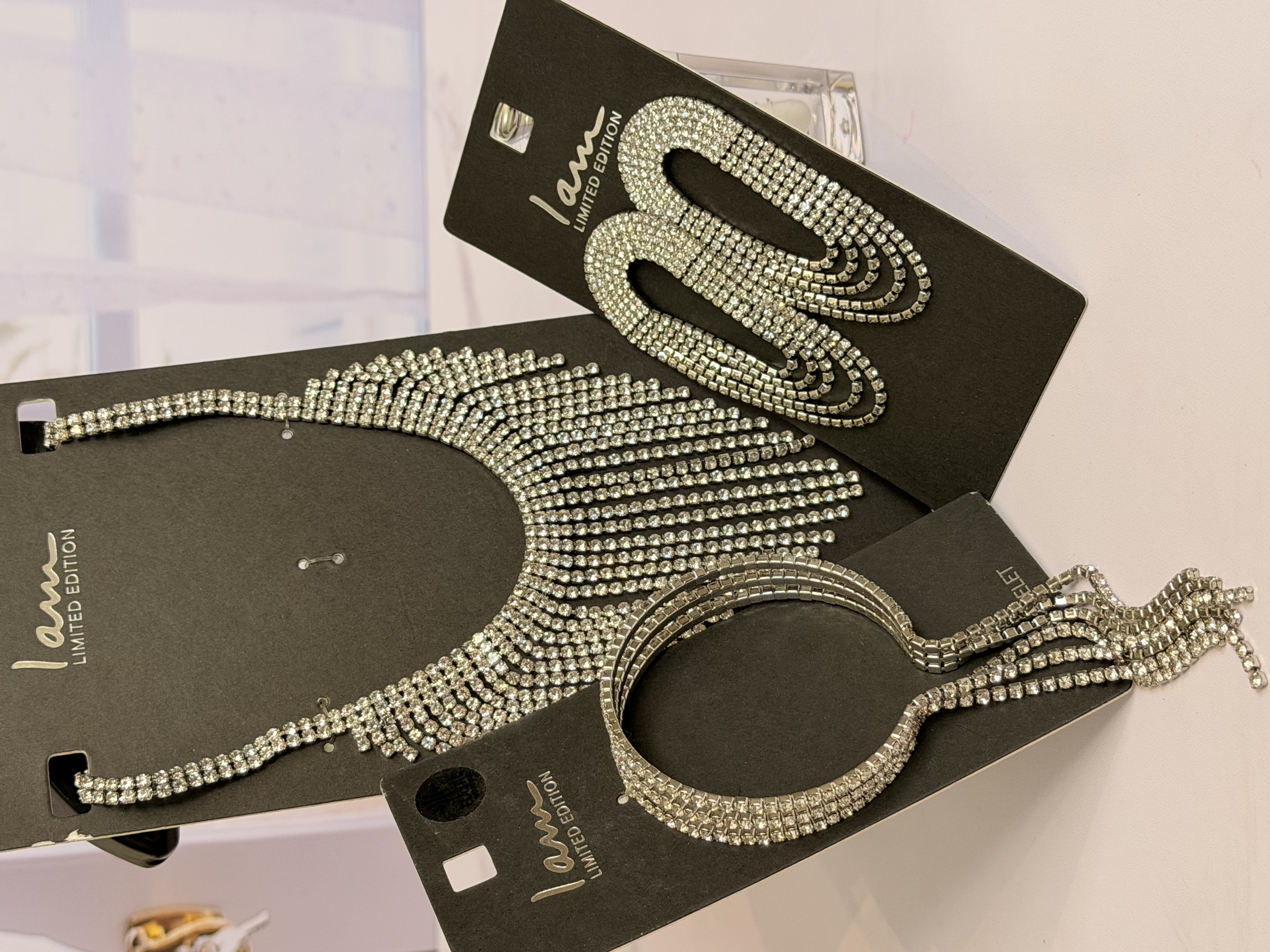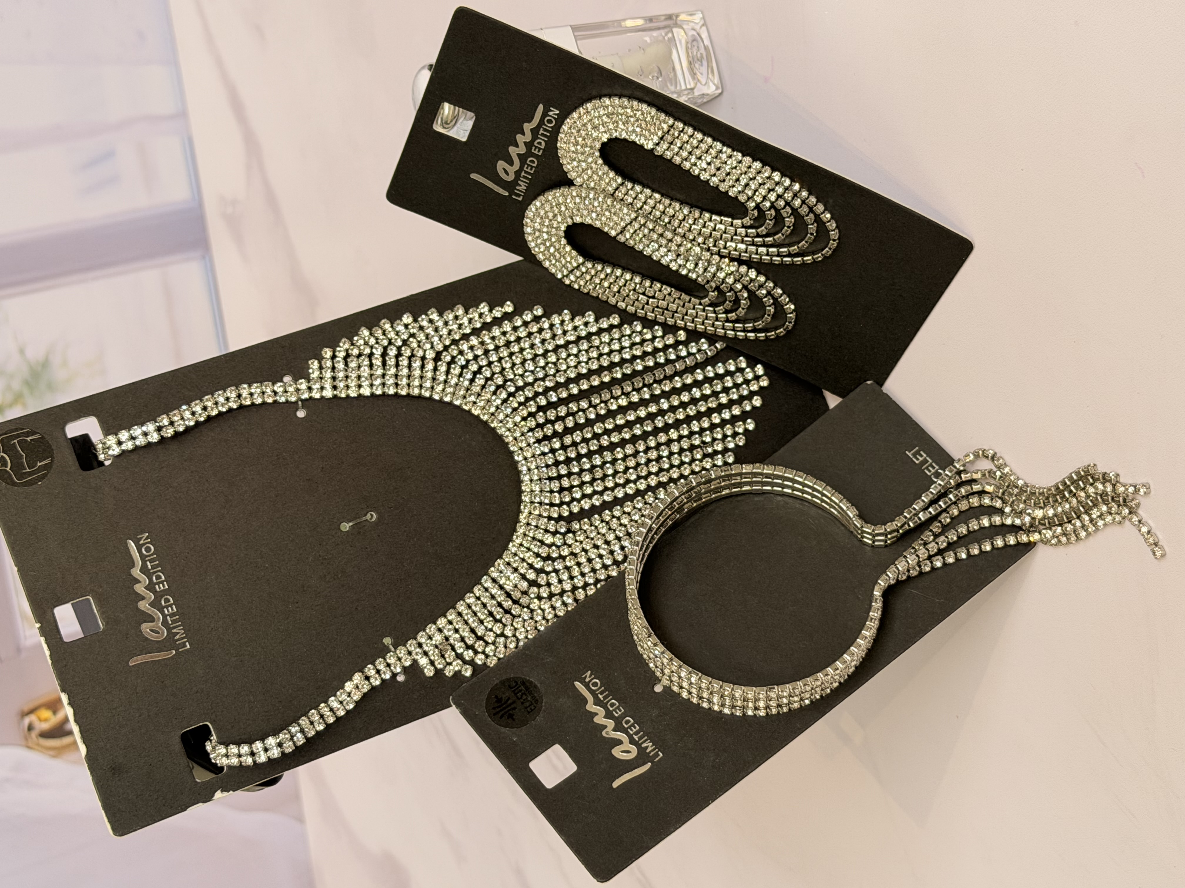 نیمست دخترانه تمام نگین | ست کامل گردنبند دستبند گوشواره درخشان و مجلسی مناسب هدیه