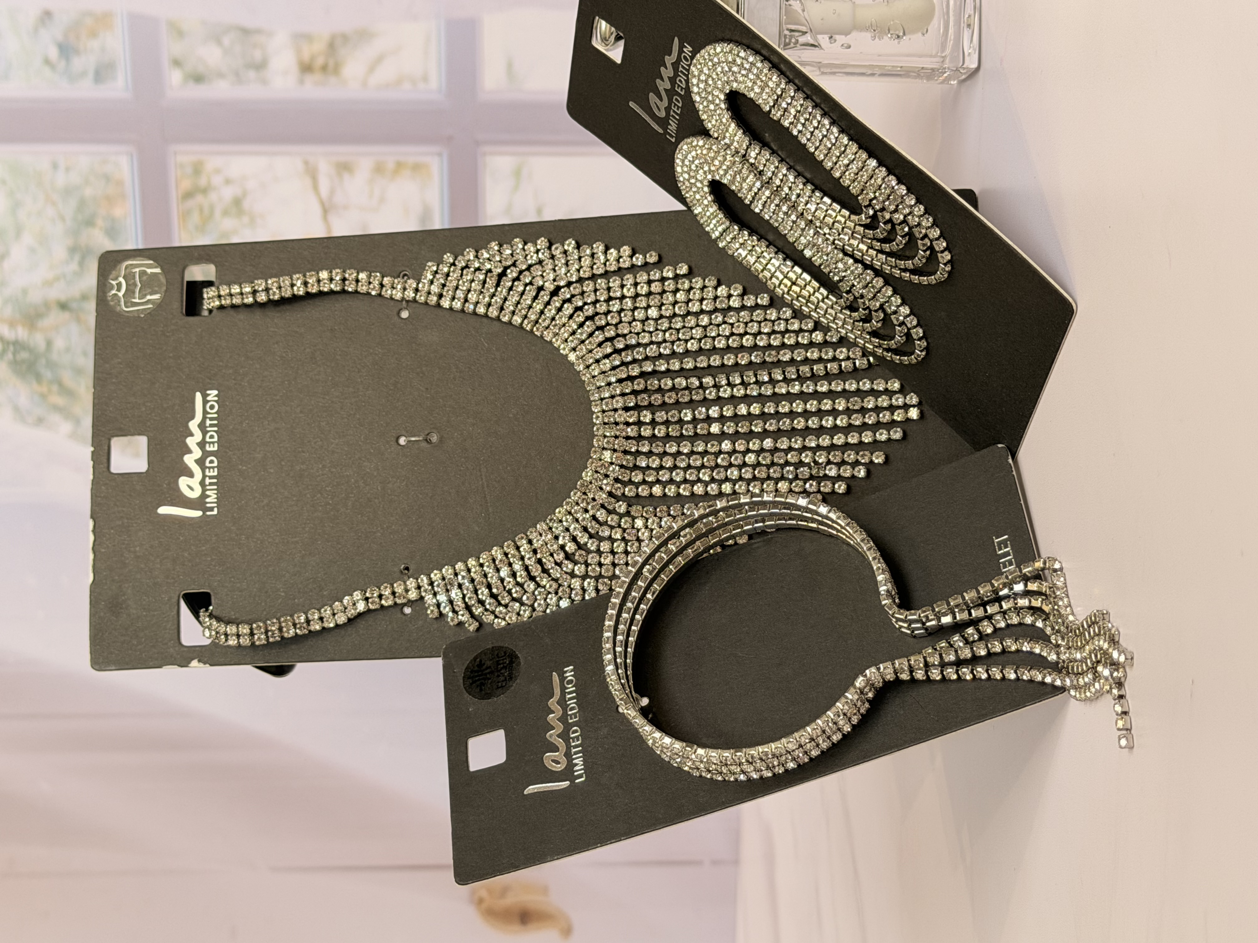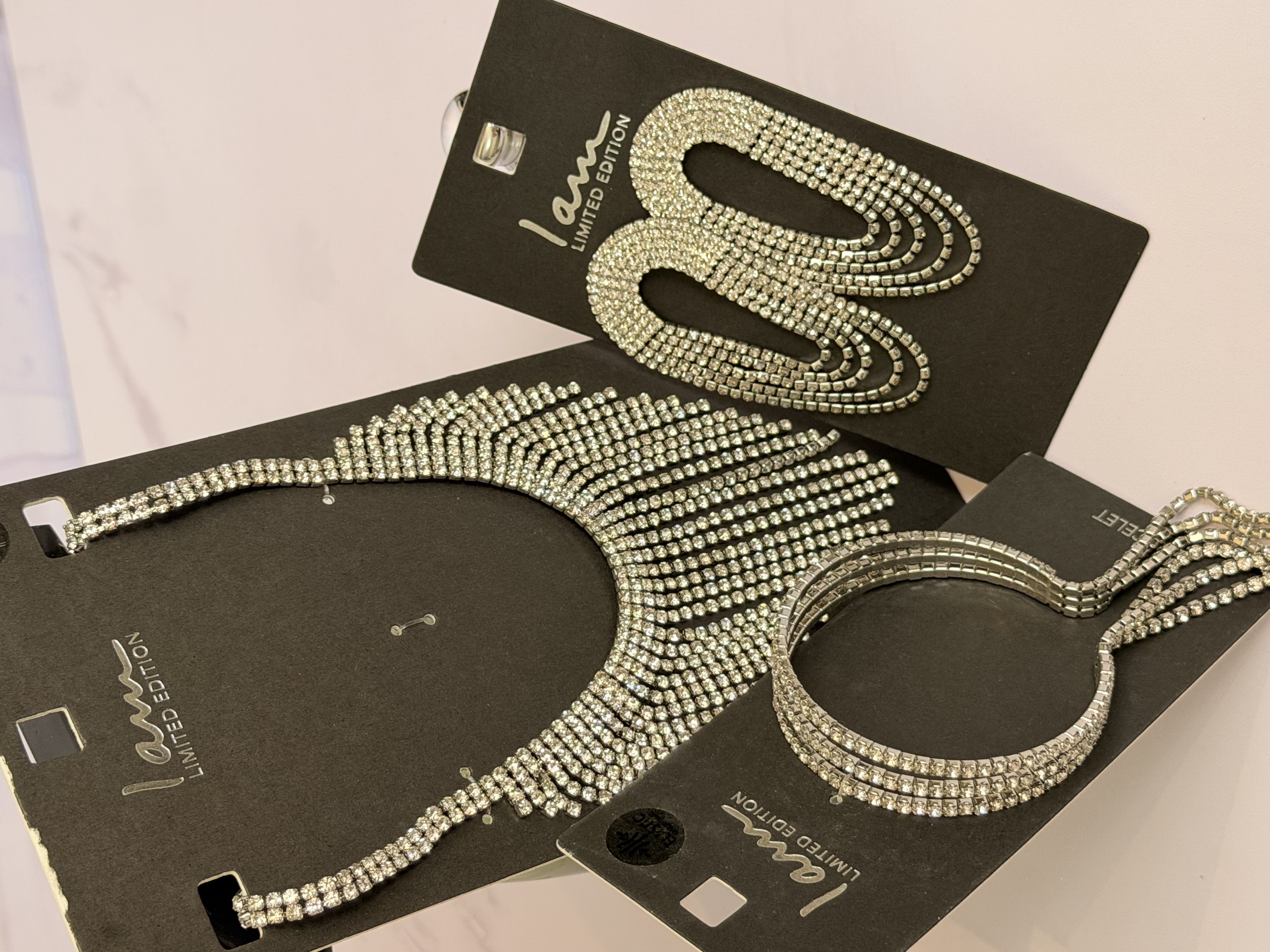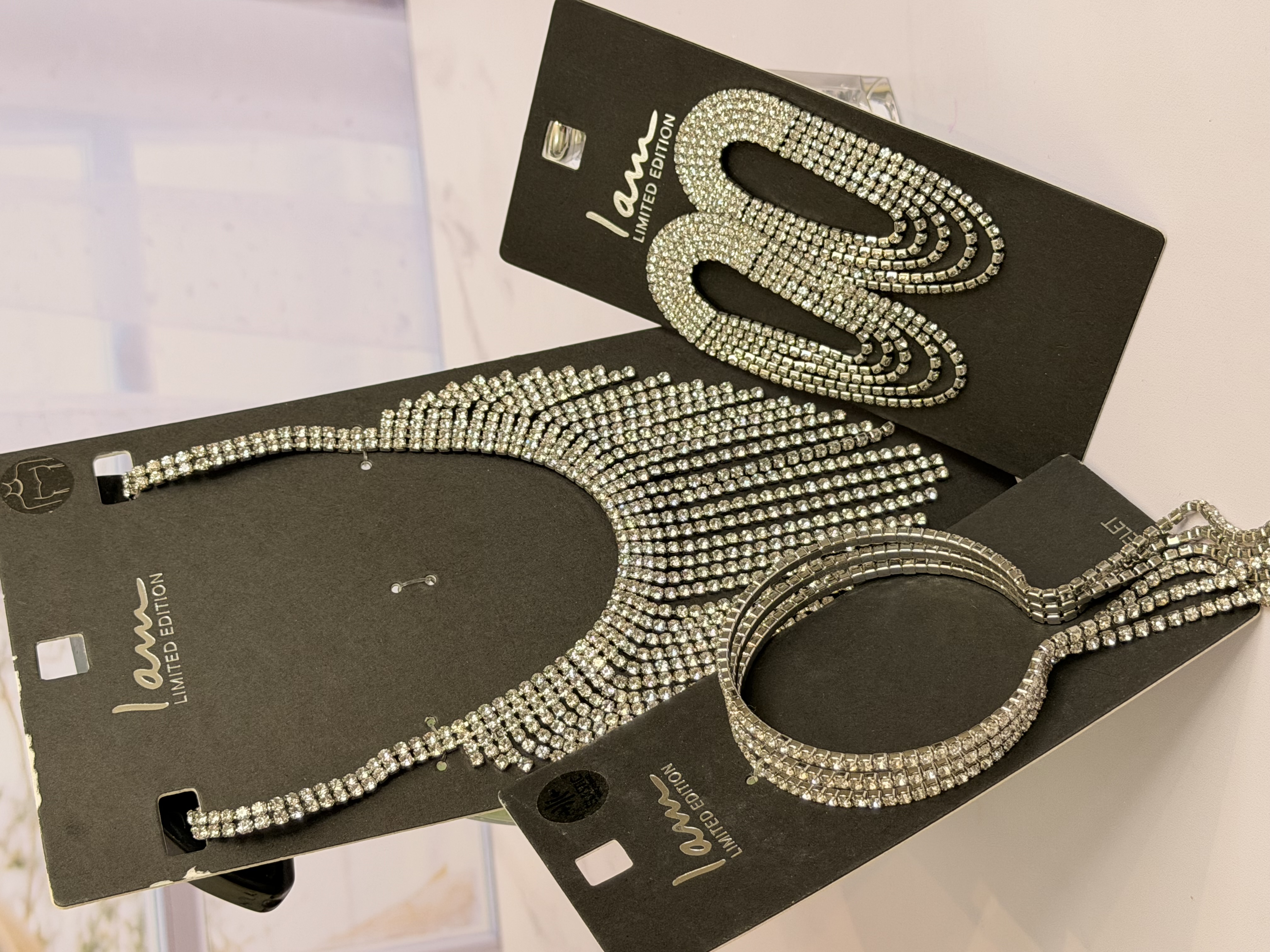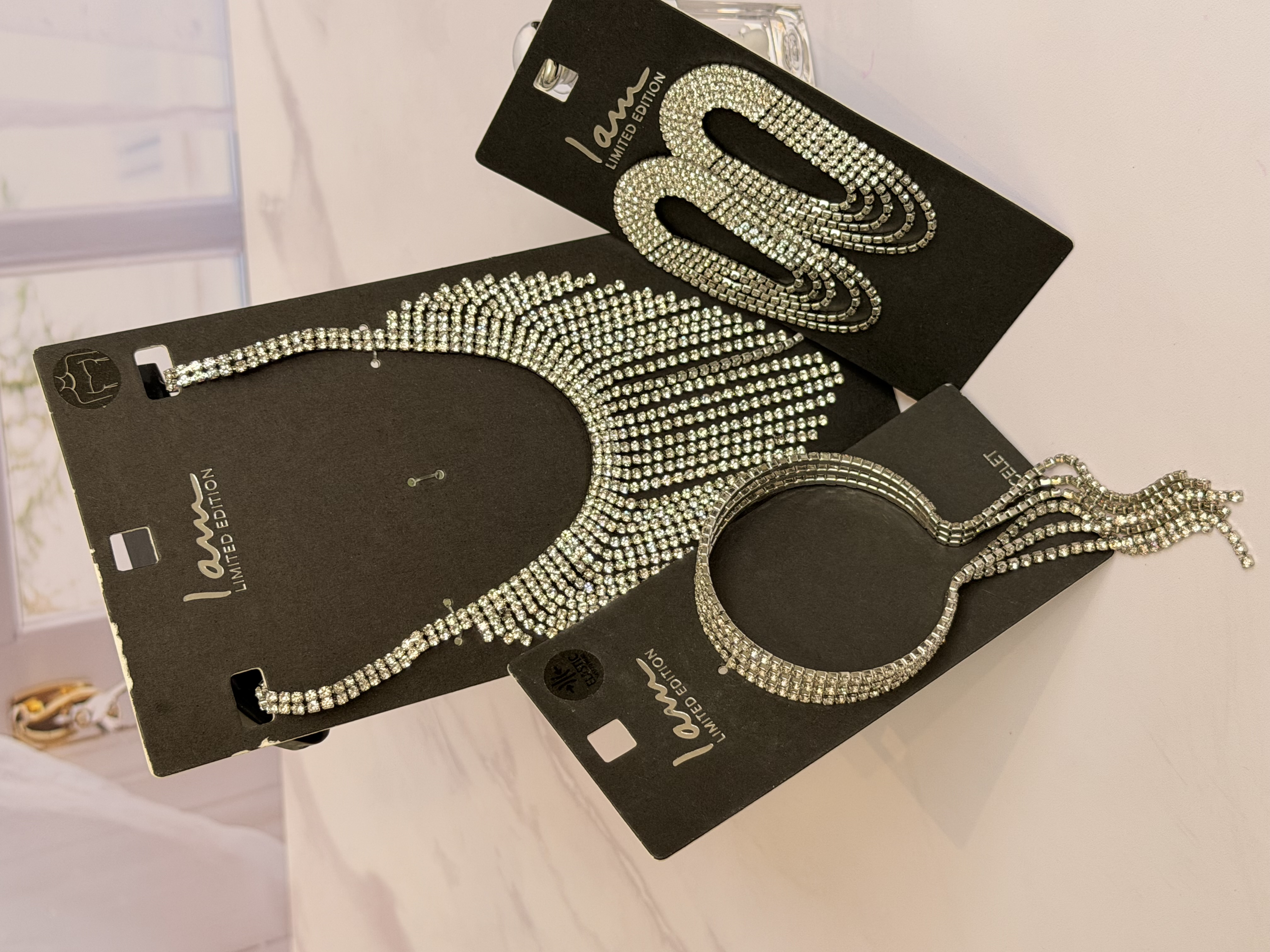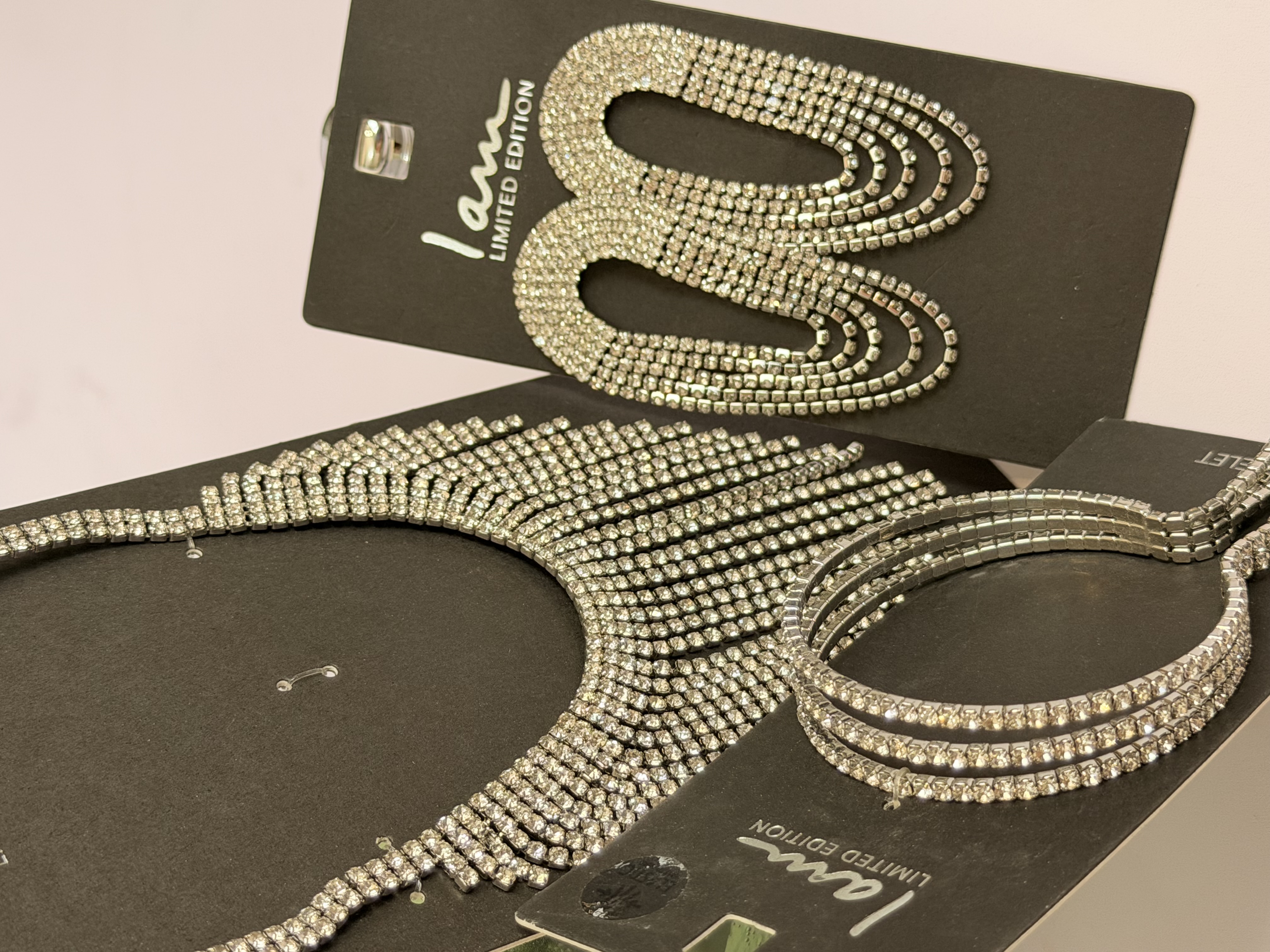 نیمست دخترانه تمام نگین | ست کامل گردنبند دستبند گوشواره درخشان و مجلسی مناسب هدیه