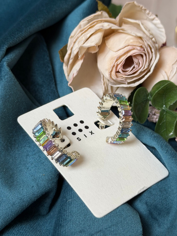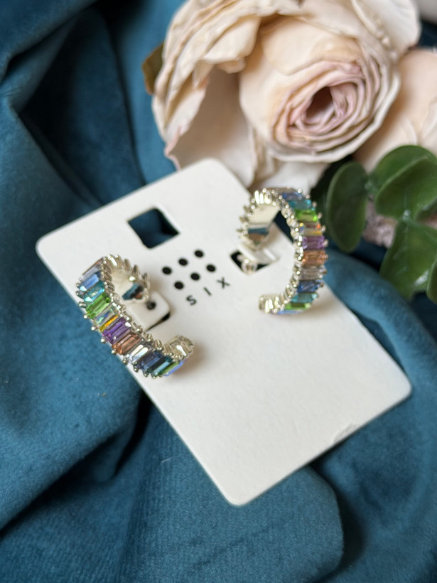 گوشواره میخی نقرهای مولتی کالر دخترانه | خرید اقساطی + ارسال فوری
