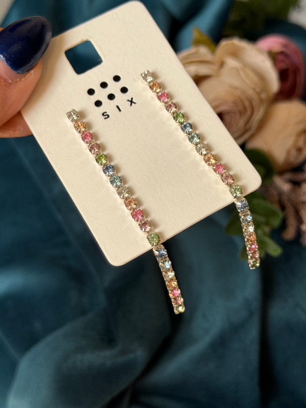 گوشواره میخی نقرهای نگین دار مولتی کالر دخترانه | خرید اقساطی + ارسال فوری