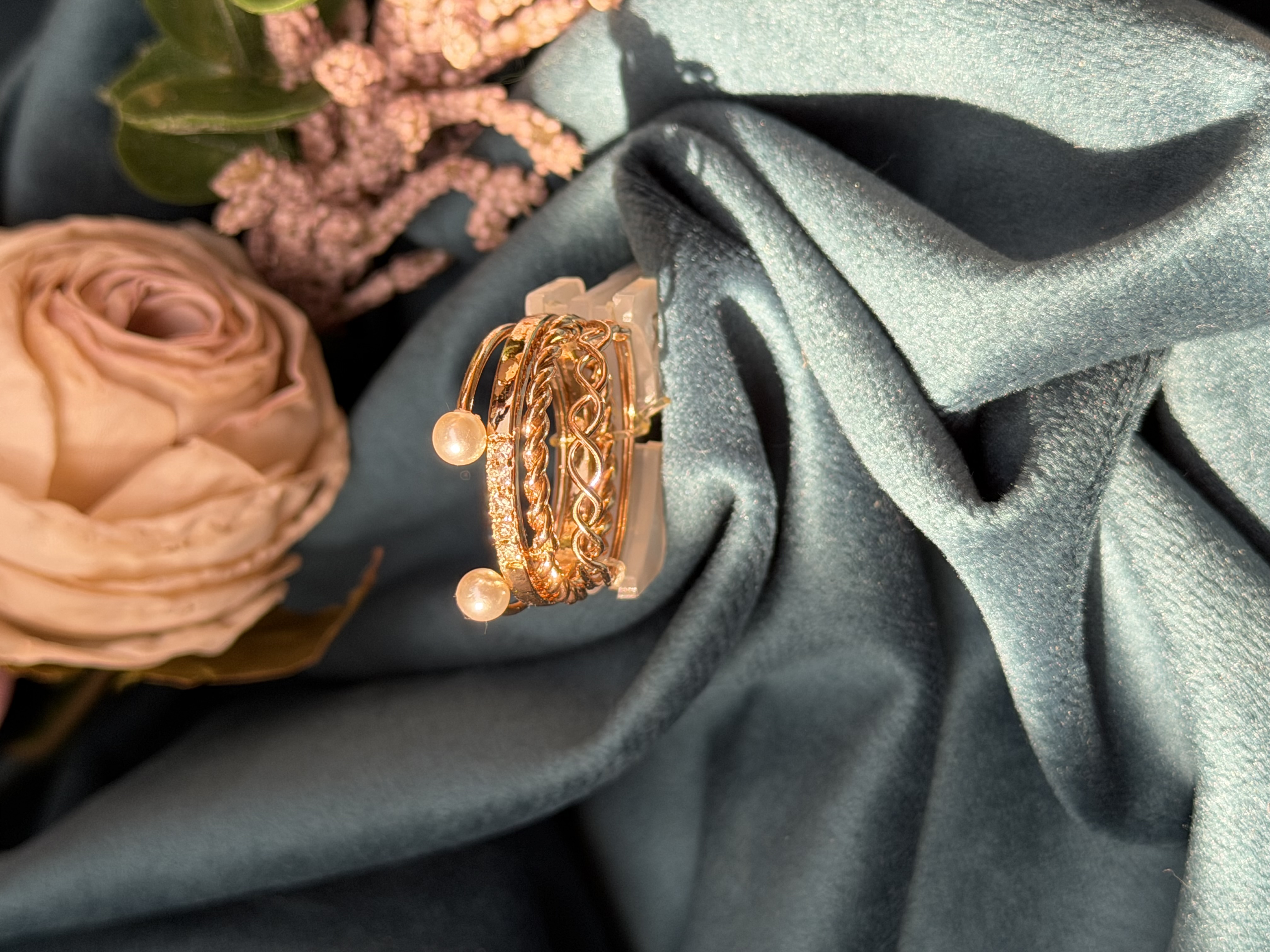 خرید و قیمت پک انگشتر دخترانه طلایی ساده شیک و مجلسی ظریف زنانه بینظیر برای کادو تولد کد 8