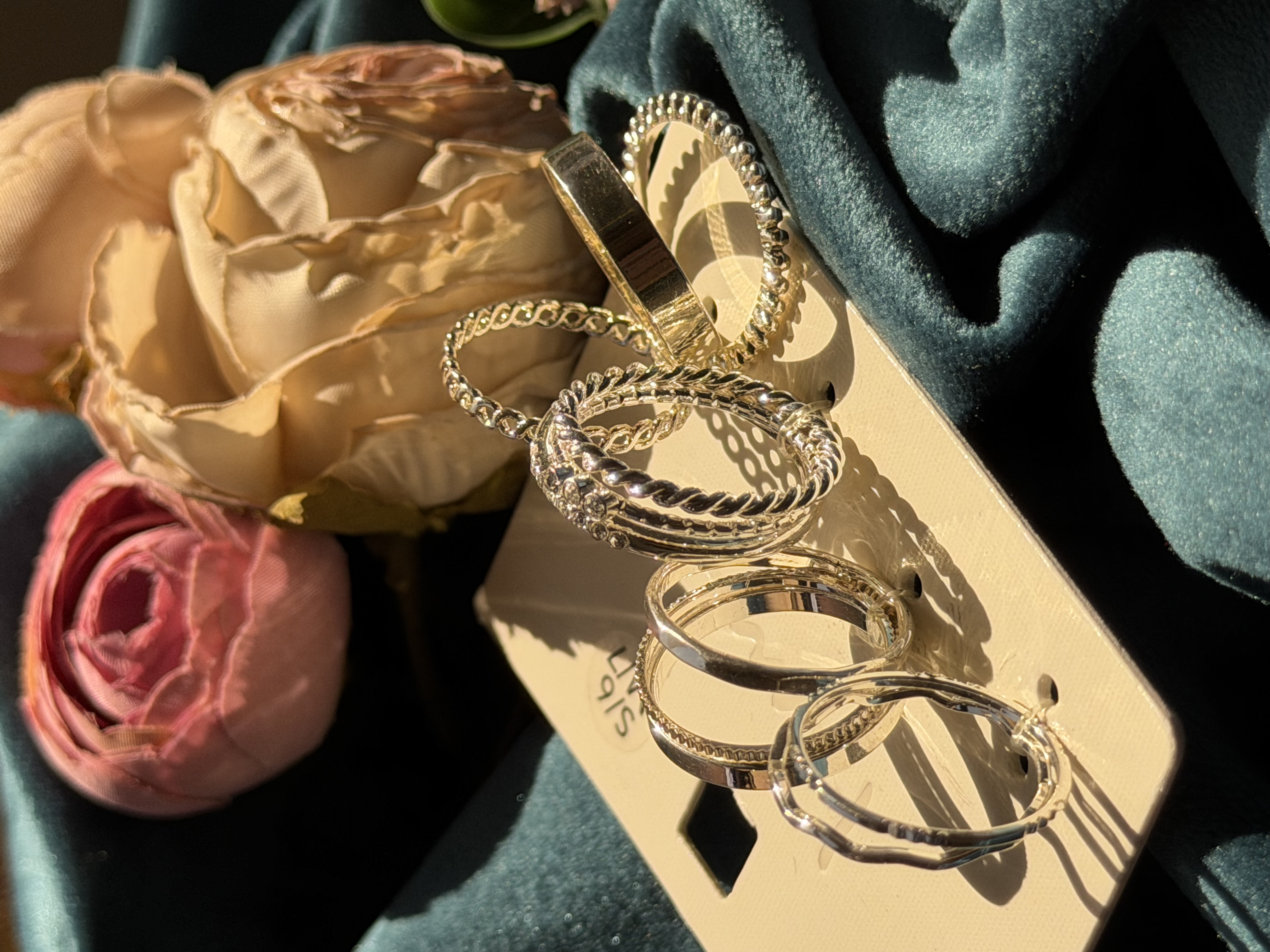 خرید پک انگشتر دخترانه نقره ای ساده شیک و مجلسی ظریف زنانه